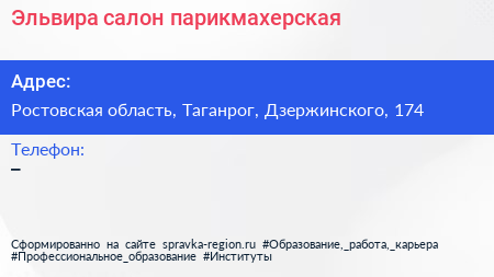 Эльвира, салон-парикмахерская по адресу Ростовская область, Таганрог, Дзержинского, 174 в дальнейшем Организация, размещена в следующих категориях: