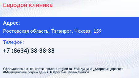 Евродон, клиника по адресу Ростовская область, Таганрог, Чехова, 159 в дальнейшем Организация, размещена в следующих категориях: