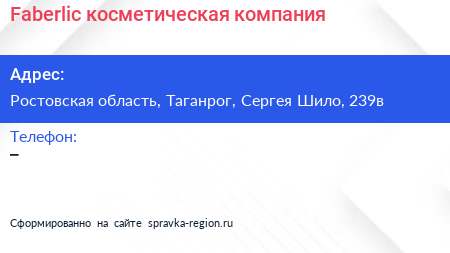 Faberlic, косметическая компания по адресу Ростовская область, Таганрог, Сергея Шило, 239в в дальнейшем Организация, размещена в следующих категориях: