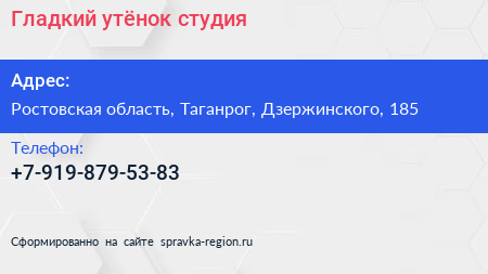Гладкий утёнок, студия по адресу Ростовская область, Таганрог, Дзержинского, 185 в дальнейшем Организация, размещена в следующих категориях: