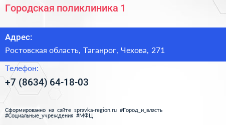 Городская поликлиника №1 по адресу Ростовская область, Таганрог, Чехова, 271 в дальнейшем Организация, размещена в следующих категориях: