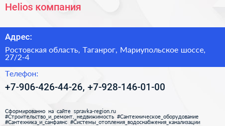 Helios, компания по адресу Ростовская область, Таганрог, Мариупольское шоссе, 27/2-4 в дальнейшем Организация, размещена в следующих категориях: