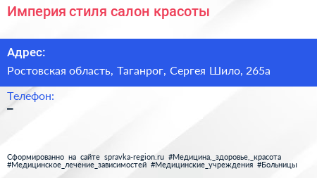 Империя стиля, салон красоты по адресу Ростовская область, Таганрог, Сергея Шило, 265а в дальнейшем Организация, размещена в следующих категориях: