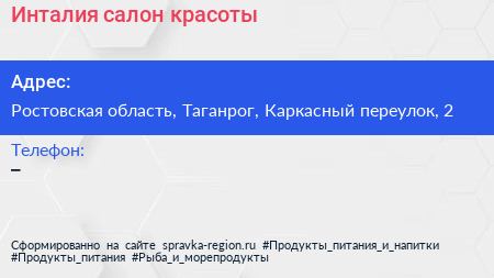 Инталия, салон красоты по адресу Ростовская область, Таганрог, Каркасный переулок, 2 в дальнейшем Организация, размещена в следующих категориях: