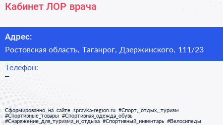Кабинет ЛОР-врача по адресу Ростовская область, Таганрог, Дзержинского, 111/23 в дальнейшем Организация, размещена в следующих категориях: