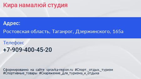 Кира-намалюй, студия по адресу Ростовская область, Таганрог, Дзержинского, 165а в дальнейшем Организация, размещена в следующих категориях: