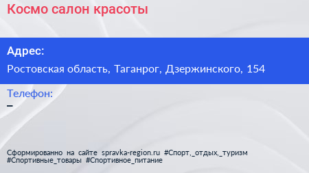 Космо, салон красоты по адресу Ростовская область, Таганрог, Дзержинского, 154 в дальнейшем Организация, размещена в следующих категориях: