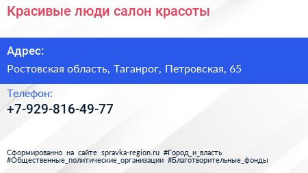 Красивые люди, салон красоты по адресу Ростовская область, Таганрог, Петровская, 65 в дальнейшем Организация, размещена в следующих категориях: