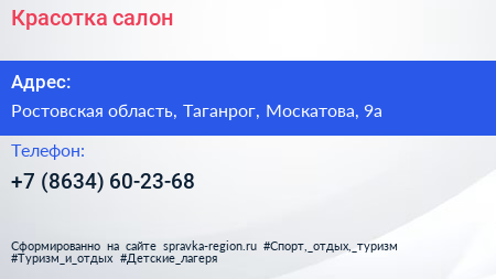 Красотка, салон по адресу Ростовская область, Таганрог, Москатова, 9а в дальнейшем Организация, размещена в следующих категориях: