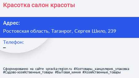 Красотка, салон красоты по адресу Ростовская область, Таганрог, Сергея Шило, 239 в дальнейшем Организация, размещена в следующих категориях: