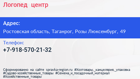 Логопед+, центр по адресу Ростовская область, Таганрог, Розы Люксембург, 49 в дальнейшем Организация, размещена в следующих категориях:
