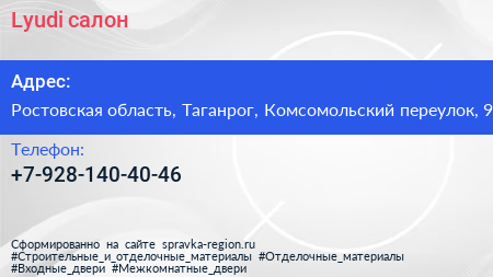 Lyudi, салон по адресу Ростовская область, Таганрог, Комсомольский переулок, 9 в дальнейшем Организация, размещена в следующих категориях: