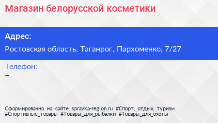 Магазин белорусской косметики по адресу Ростовская область, Таганрог, Пархоменко, 7/27 в дальнейшем Организация, размещена в следующих категориях: