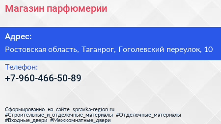 Магазин парфюмерии по адресу Ростовская область, Таганрог, Гоголевский переулок, 10 в дальнейшем Организация, размещена в следующих категориях: