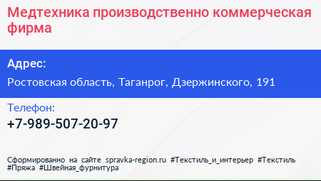 Медтехника, производственно-коммерческая фирма по адресу Ростовская область, Таганрог, Дзержинского, 191 в дальнейшем Организация, размещена в следующих категориях: