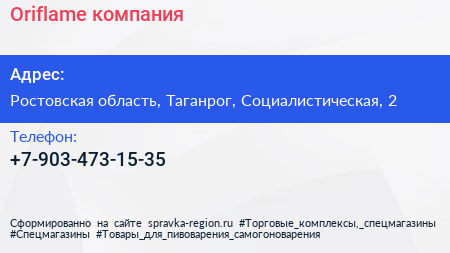 Oriflame, компания по адресу Ростовская область, Таганрог, Социалистическая, 2 в дальнейшем Организация, размещена в следующих категориях: