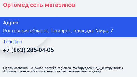 Ортомед, сеть магазинов по адресу Ростовская область, Таганрог, площадь Мира, 7 в дальнейшем Организация, размещена в следующих категориях: