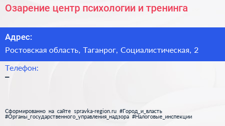 Озарение, центр психологии и тренинга по адресу Ростовская область, Таганрог, Социалистическая, 2 в дальнейшем Организация, размещена в следующих категориях: