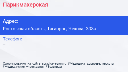 Парикмахерская по адресу Ростовская область, Таганрог, Чехова, 333а в дальнейшем Организация, размещена в следующих категориях: