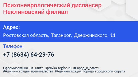 Психоневрологический диспансер, Неклиновский филиал по адресу Ростовская область, Таганрог, Дзержинского, 11 в дальнейшем Организация, размещена в следующих категориях: