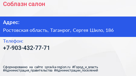 Соблазн, салон по адресу Ростовская область, Таганрог, Сергея Шило, 186 в дальнейшем Организация, размещена в следующих категориях: