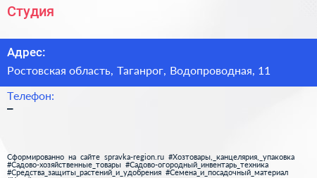Студия по адресу Ростовская область, Таганрог, Водопроводная, 11 в дальнейшем Организация, размещена в следующих категориях: