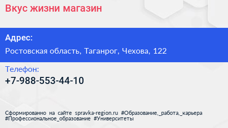 Вкус жизни, магазин по адресу Ростовская область, Таганрог, Чехова, 122 в дальнейшем Организация, размещена в следующих категориях: