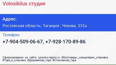 Volosikilux, студия по адресу Ростовская область, Таганрог, Чехова, 151а в дальнейшем Организация, размещена в следующих категориях: