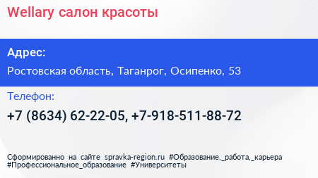 Wellary, салон красоты по адресу Ростовская область, Таганрог, Осипенко, 53 в дальнейшем Организация, размещена в следующих категориях: