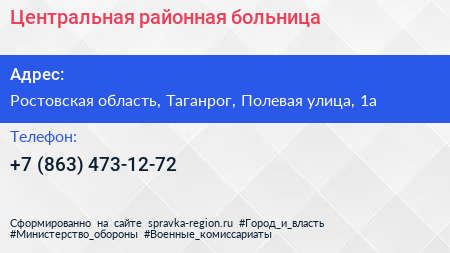Центральная районная больница по адресу Ростовская область, Таганрог, Полевая улица, 1а в дальнейшем Организация, размещена в следующих категориях: