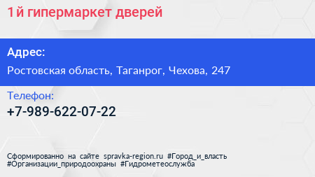 1-й гипермаркет дверей по адресу Ростовская область, Таганрог, Чехова, 247 в дальнейшем Организация, размещена в следующих категориях: