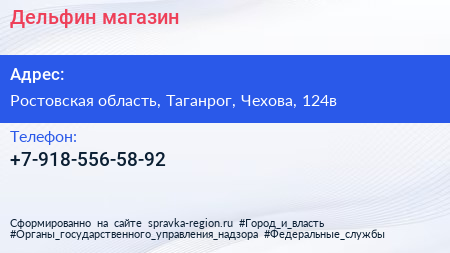 Дельфин, магазин по адресу Ростовская область, Таганрог, Чехова, 124в в дальнейшем Организация, размещена в следующих категориях:
