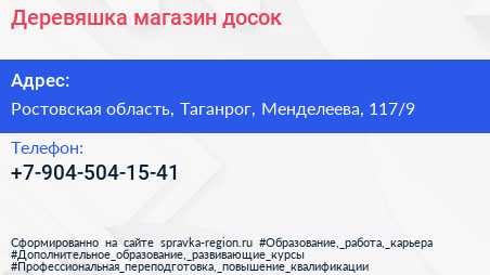 Деревяшка, магазин досок по адресу Ростовская область, Таганрог, Менделеева, 117/9 в дальнейшем Организация, размещена в следующих категориях: