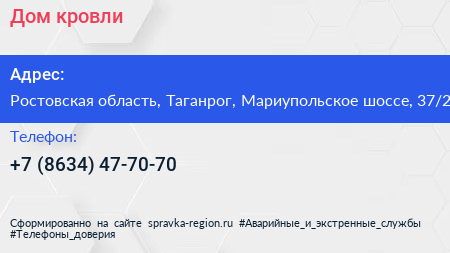 Дом кровли по адресу Ростовская область, Таганрог, Мариупольское шоссе, 37/2 в дальнейшем Организация, размещена в следующих категориях: