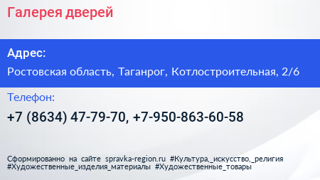 Галерея дверей по адресу Ростовская область, Таганрог, Котлостроительная, 2/6 в дальнейшем Организация, размещена в следующих категориях:
