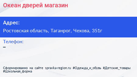 Океан дверей, магазин по адресу Ростовская область, Таганрог, Чехова, 351г в дальнейшем Организация, размещена в следующих категориях:
