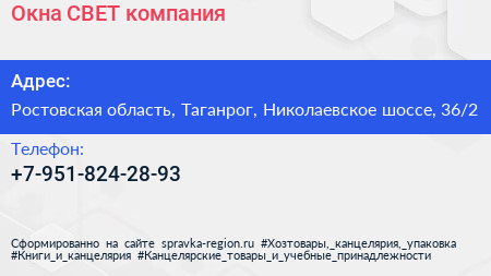 Окна СВЕТ, компания по адресу Ростовская область, Таганрог, Николаевское шоссе, 36/2 в дальнейшем Организация, размещена в следующих категориях: