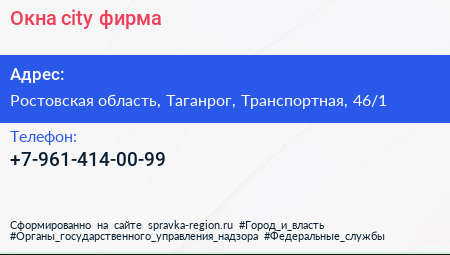Окна-city, фирма по адресу Ростовская область, Таганрог, Транспортная, 46/1 в дальнейшем Организация, размещена в следующих категориях: