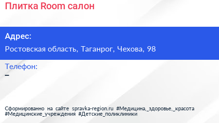 Плитка Rооm, салон по адресу Ростовская область, Таганрог, Чехова, 98 в дальнейшем Организация, размещена в следующих категориях: