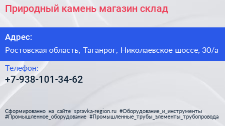 Природный камень, магазин-склад по адресу Ростовская область, Таганрог, Николаевское шоссе, 30/а в дальнейшем Организация, размещена в следующих категориях: