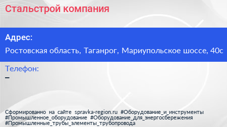 Стальстрой, компания по адресу Ростовская область, Таганрог, Мариупольское шоссе, 40с в дальнейшем Организация, размещена в следующих категориях: