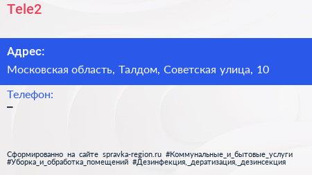 Tele2 по адресу Московская область, Талдом, Советская улица, 10 в дальнейшем Организация, размещена в следующих категориях: