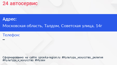 24, автосервис по адресу Московская область, Талдом, Советская улица, 14г в дальнейшем Организация, размещена в следующих категориях: