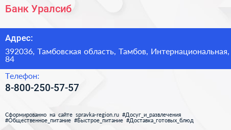 Банк Уралсиб по адресу 392036, Тамбовская область, Тамбов, Интернациональная, 84 в дальнейшем Организация, размещена в следующих категориях: