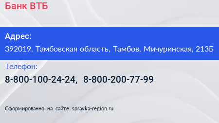 Банк ВТБ по адресу 392019, Тамбовская область, Тамбов, Мичуринская, 213Б в дальнейшем Организация, размещена в следующих категориях:
