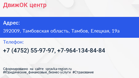 ДвижОК, центр по адресу 392009, Тамбовская область, Тамбов, Елецкая, 19а в дальнейшем Организация, размещена в следующих категориях: