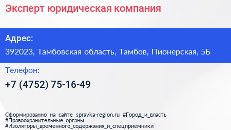 Эксперт, юридическая компания по адресу 392023, Тамбовская область, Тамбов, Пионерская, 5Б в дальнейшем Организация, размещена в следующих категориях: