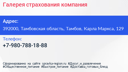 Галерея страхования, компания по адресу 392000, Тамбовская область, Тамбов, Карла Маркса, 129 в дальнейшем Организация, размещена в следующих категориях: