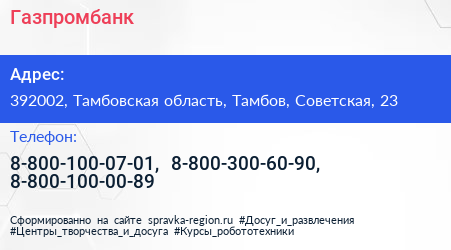 Газпромбанк по адресу 392002, Тамбовская область, Тамбов, Советская, 23 в дальнейшем Организация, размещена в следующих категориях: