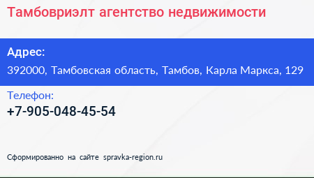 Тамбовриэлт, агентство недвижимости по адресу 392000, Тамбовская область, Тамбов, Карла Маркса, 129 в дальнейшем Организация, размещена в следующих категориях: